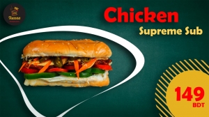 Toasted sub bun,grill supreme chicken, lettuce,oni...